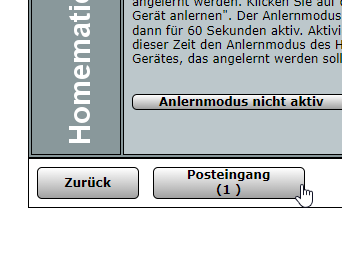 Jetzt muss der Schalter noch in HomeMatic angelert werden. Dazu also zurück zur HomeMatic Startseite:
