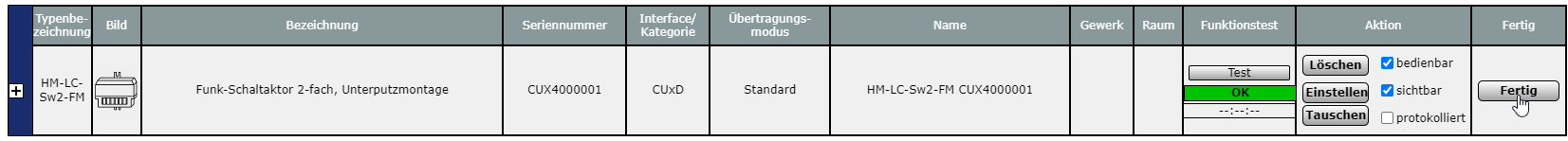 Jetzt kann das Gerät wie ein normaler Schalter konfiguriert werden.